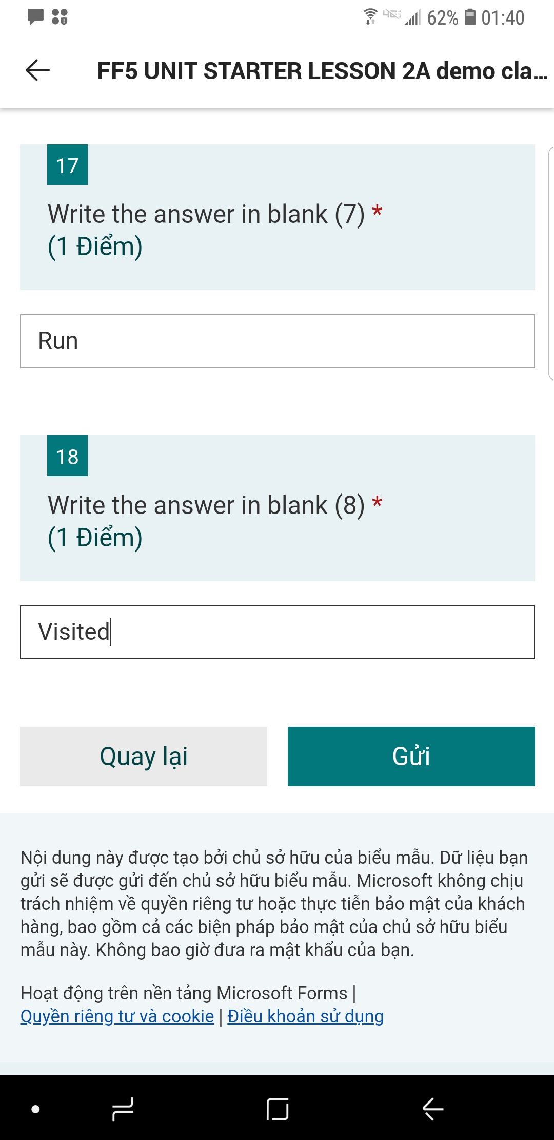 Nếu bài tập không có sẵn kết quả, học viên cần chờ giáo viên trả bài.