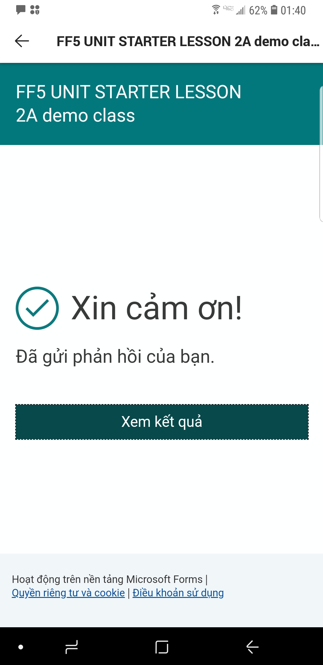 Khi quý phụ huynh và học viên nhấn chọn, màn hình sẽ hiển thị như sau: