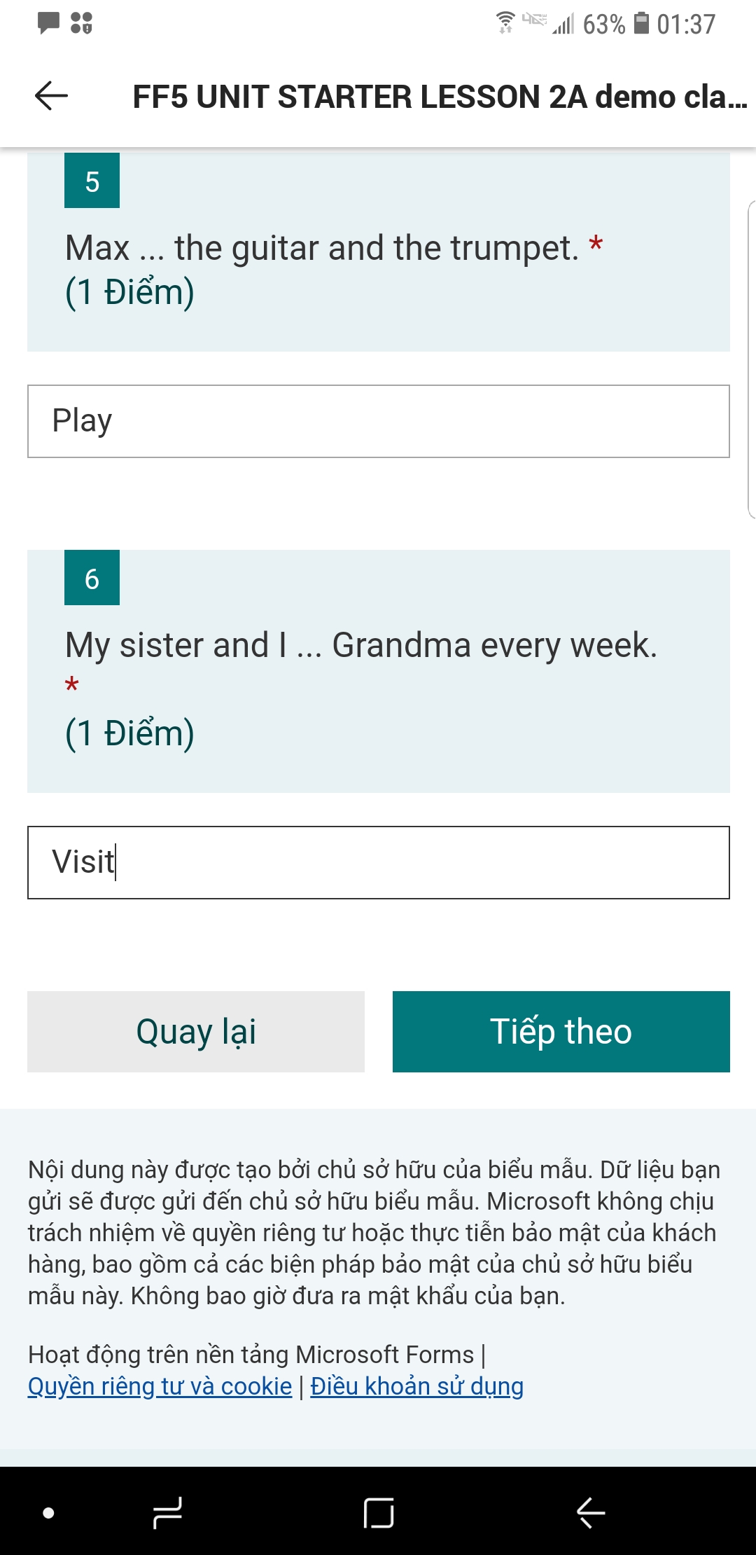 Học viên làm bài tập. Sau khi làm đến cuối bài nhấn chọn