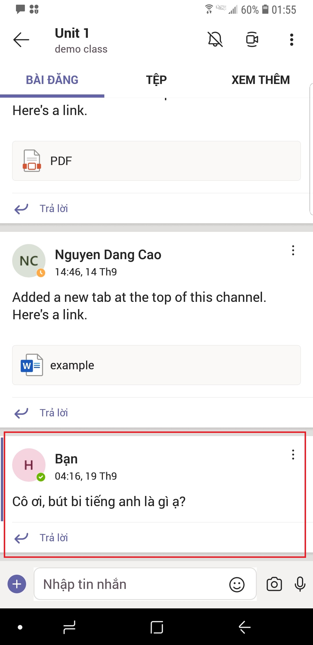 Câu hỏi sẽ hiện lên trong phần thảo luận. Khi giáo viên thấy câu hỏi giáo viên sẽ trả lời thắc mắc cho học viên.